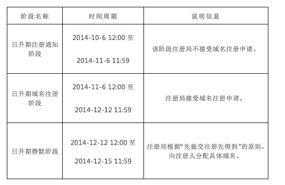 如在日升期域名注册阶段,多个符合资格的注册人申请注册同一域名时,注册局将在日升期静默阶段根据“先提交注册先得到”的原则,向注册人分配具体域名。