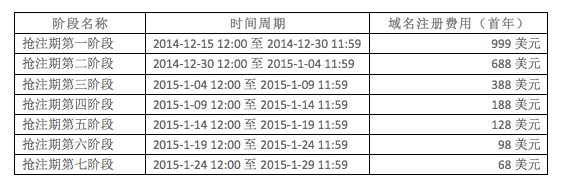 2015年1月29(12:00)起,注册价格请联系注册商进行咨询。